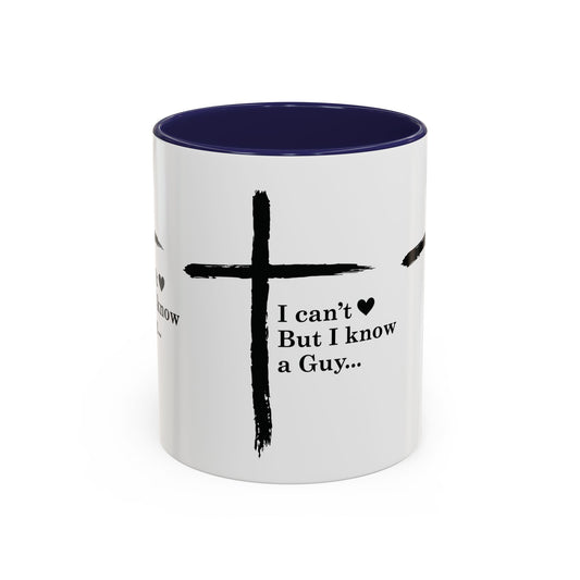 Christian Coffee Mug — "I Can’t But I Know a Guy" Accent Mug