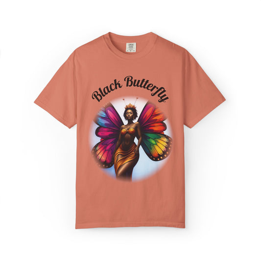Black Butterfly T-shirt — Afro Queen Rainbow Wings Crewneck