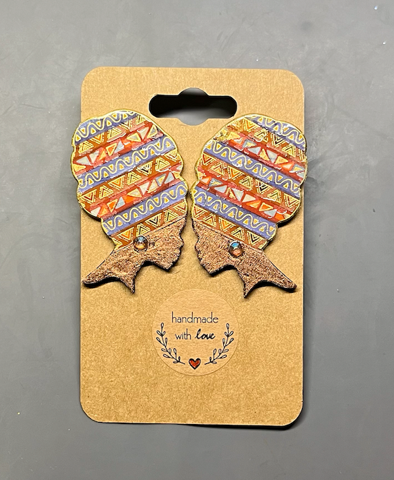 Celebrate cultural elegance with these "A Nubian Queen 2.0" earrings, crafted from smooth wood blanks and enhanced with durable metallic patterns. Each pair showcases refined artistry, making a bold statement while maintaining lightweight comfort. Perfect for those who appreciate unique, handcrafted accessories that honor heritage and style simultaneously.