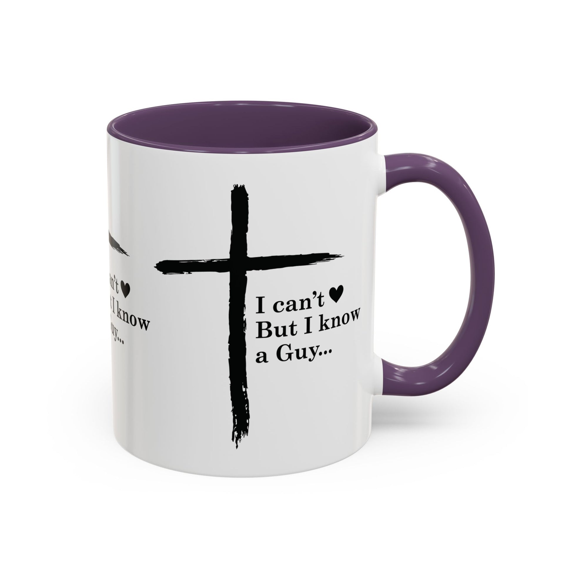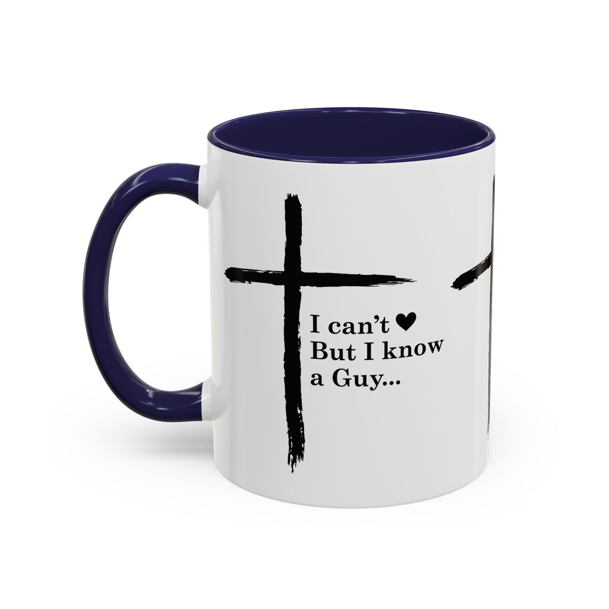 Christian Coffee Mug — "I Can’t But I Know a Guy" Accent Mug