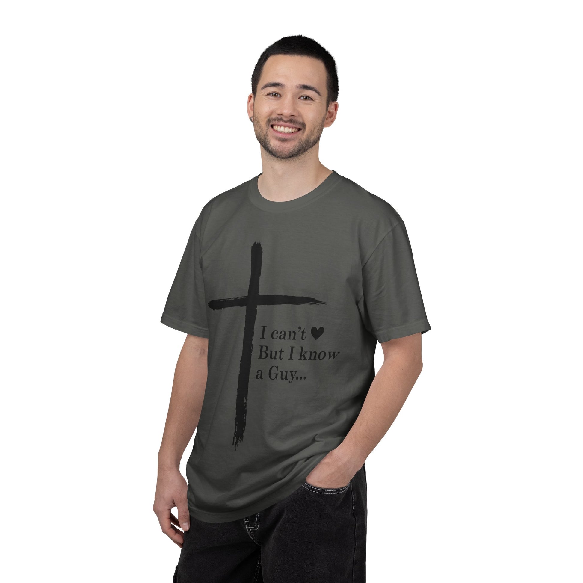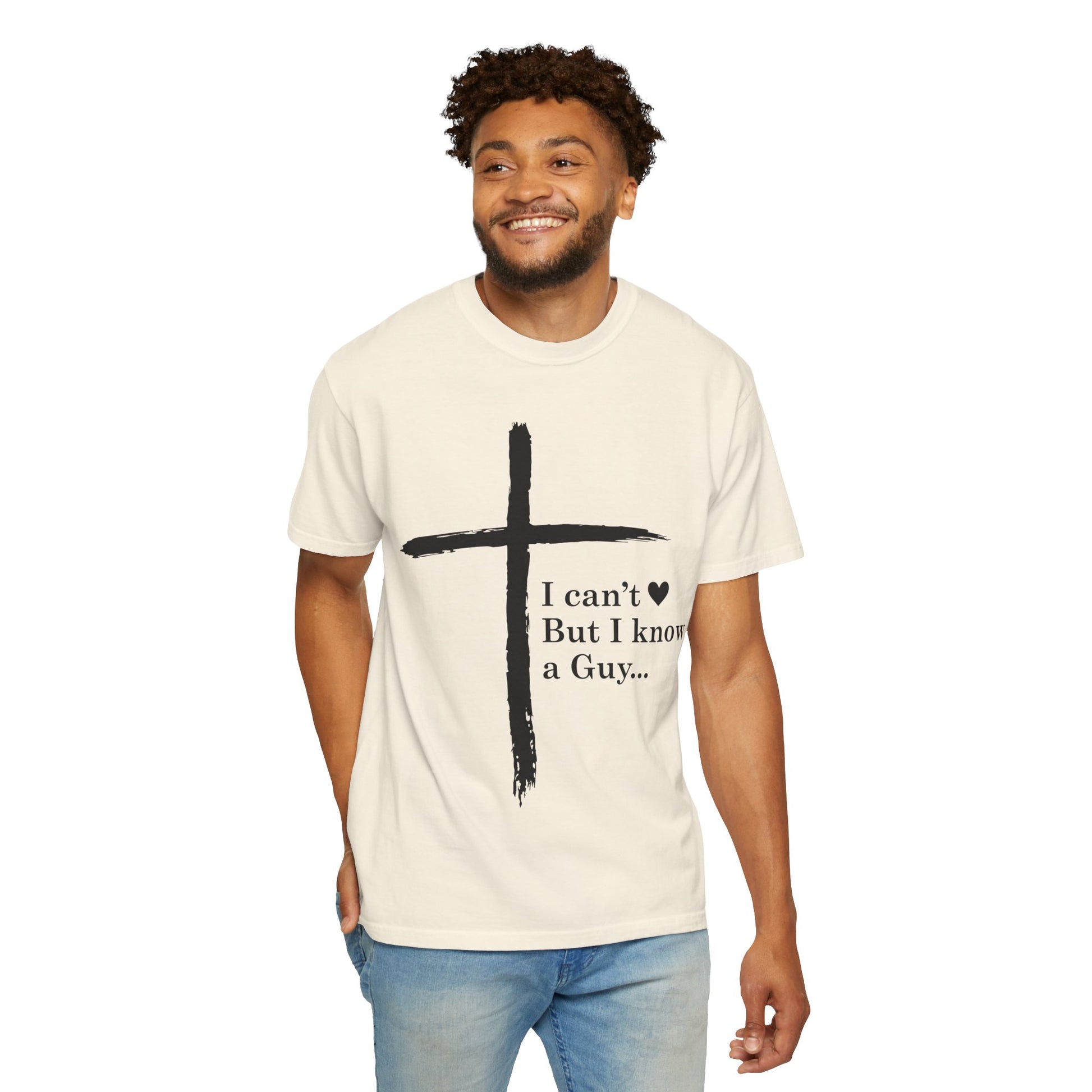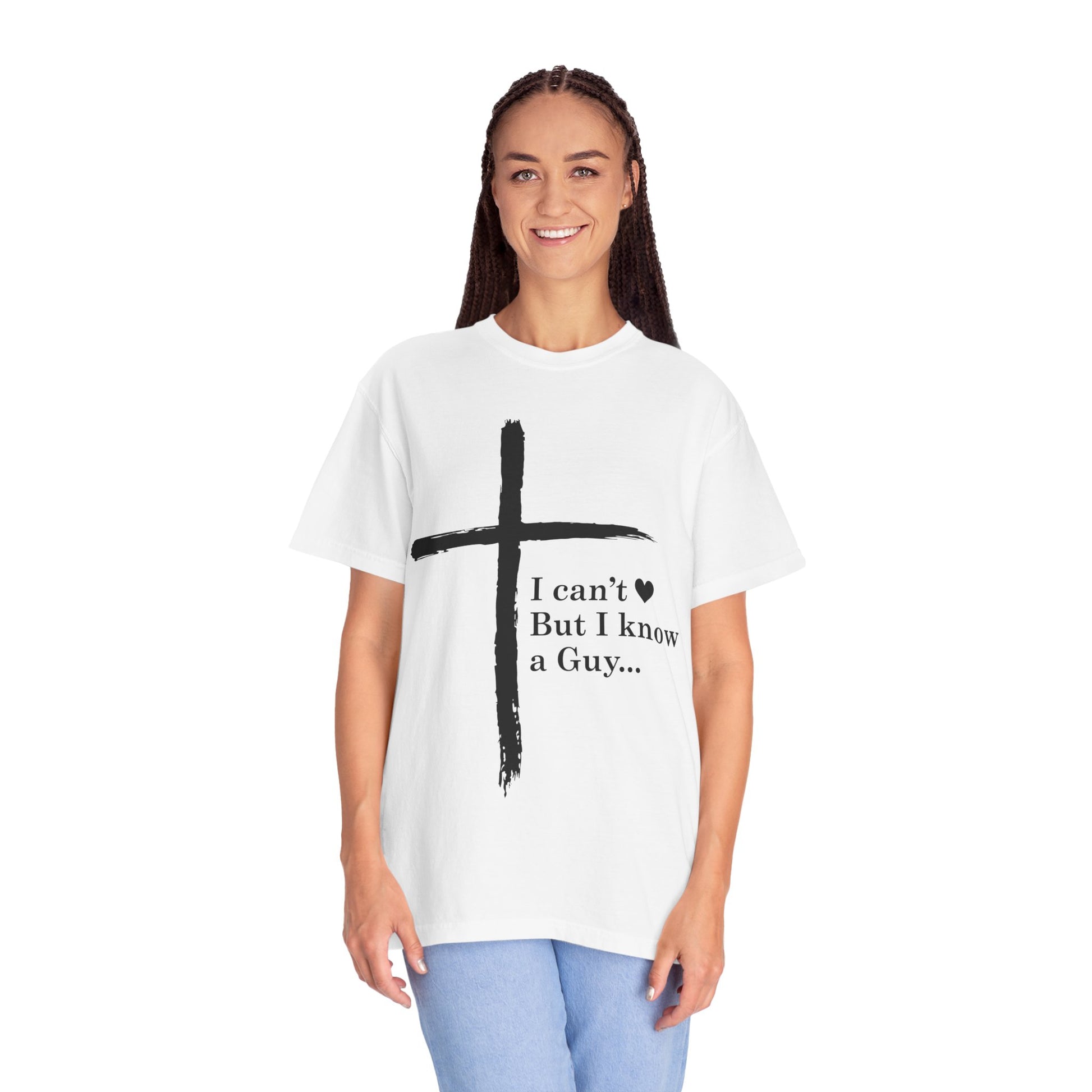 Christian Cross T-Shirt — “I can't But I know a Guy…” Faith Tee