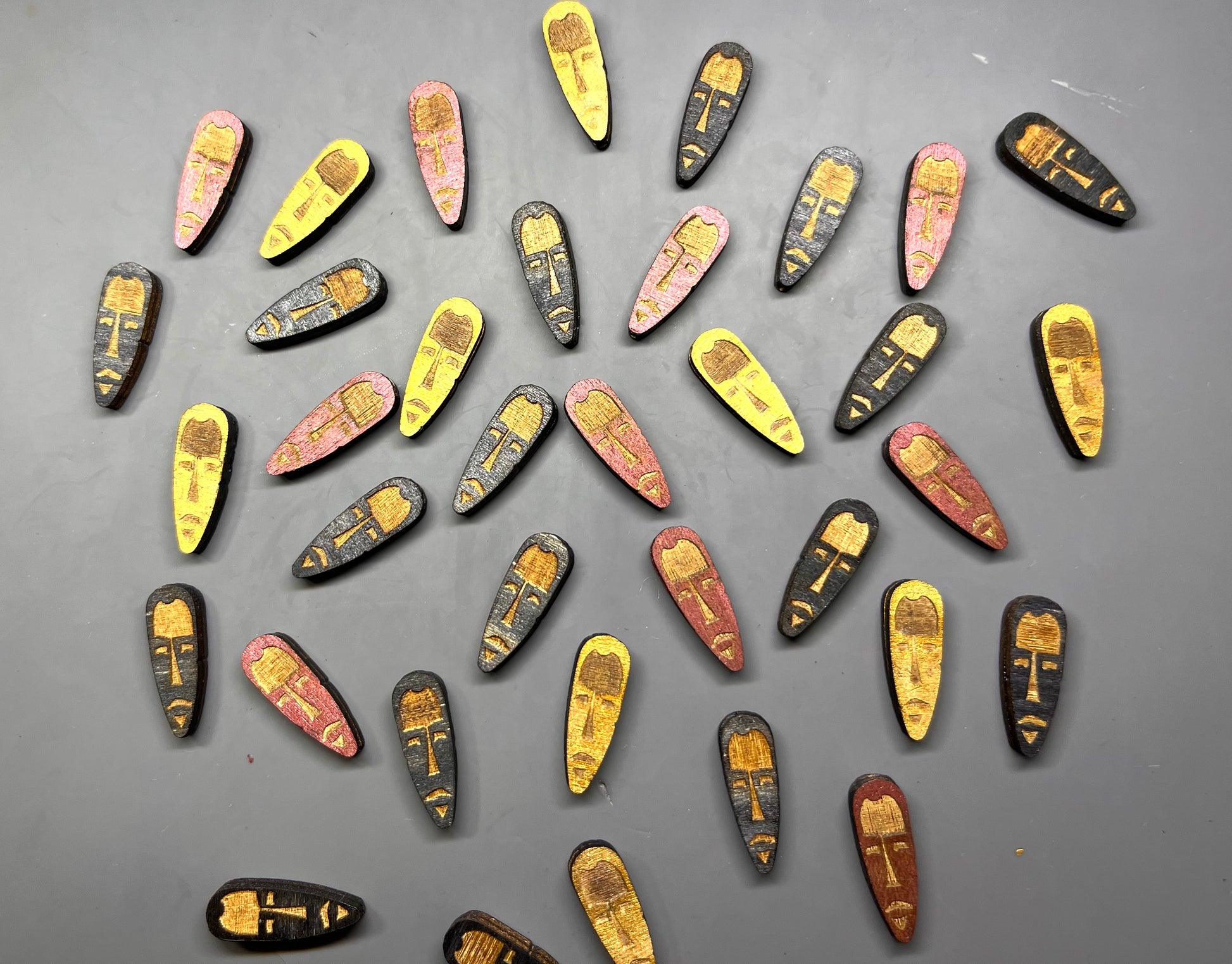 These unique mask beads feature stained wood accented with metallic paints, each bead meticulously engraved with intricate details. Measuring 1mm in hole size, the pack includes 6 handcrafted beads perfect for creating standout earrings, bracelets, or necklaces. Elevate your jewelry designs with this one-of-a-kind collection that combines artisanal craftsmanship and striking aesthetics.